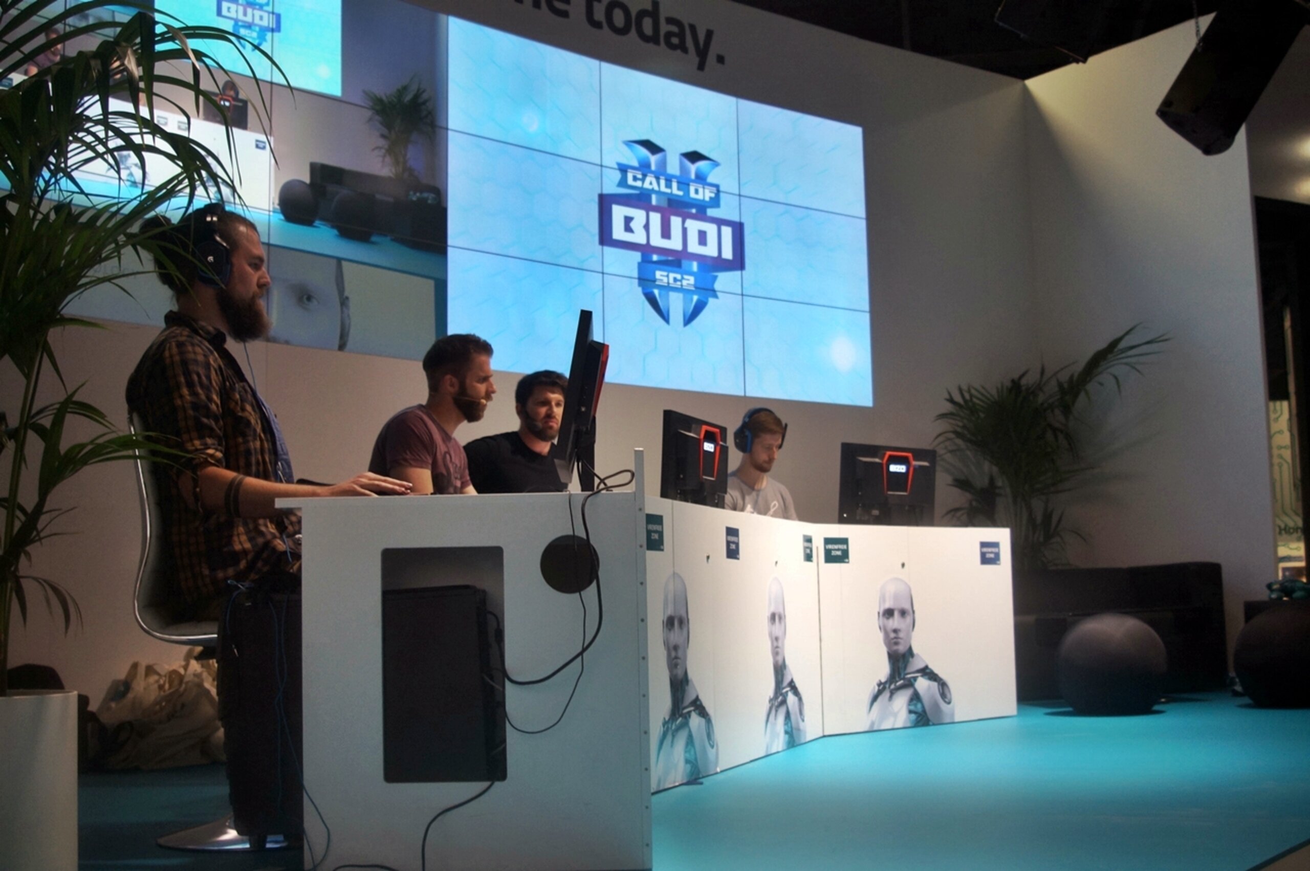 Dann gab es noch ein schnelles Foto mit unseren zwei Chaoten von Bonjwa und Budi musste auch schon wieder los. Auch Mental und Niklas hatten etwas zu tun: Denn sie mussten den ersten Tag der offiziellen Call of Budi gamescom-Edition casten! Jeden Tag konnten sich mehrere Leute unter dem Hashtag #ESETcallsBudi bewerben. Die Personen, mit den meisten retweets, durften dann auf der gamescom im Turnier mitspielen. Jeweils zwei Leute spielten im single-elimination Style gegeinander. Die Gewinner mussten dann noch einmal gegeneinander antreten und der Gewinner dieses Matches hatte es geschafft: Er durfte gegen Budi spielen.