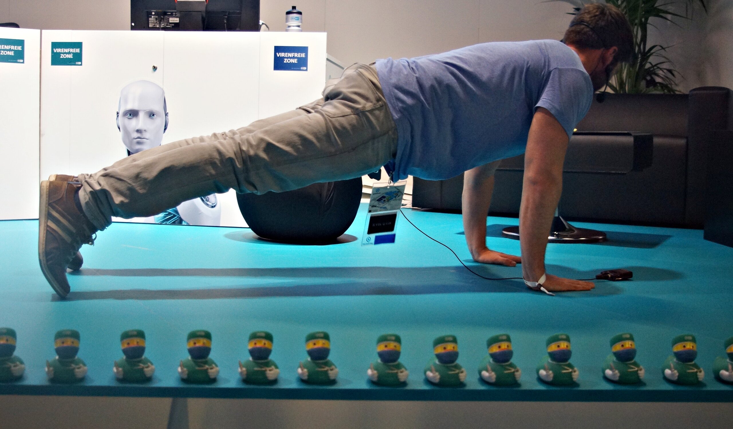 Kameramann für den Tag machte Gunnar von den Raketenbohnen. Auch er ließ manchmal von seiner Technik ab und beglückte mehrere Fans mit Fotos und Unterschriften. Nach einem kurzen Sound- und Internetcheck ging es dann aber auch sofort los. Call of Budi startete in die nächste Runde! Unter anderem dabei war auch Solar aus unserer wunderbaren Community. Der Cast war wie immer spektakulär. Matteo warf Rocketbeans-Shirts in die Menge, verteilte Warnwesten und ESET Entchen. Es gab Wetten und Wetteinsätze - deswegen durfte Matteo auch live auf der Bühne seine Liegestütz vorführen. Dass dies nur ein Vorgeschmack war auf das, was uns bei der Liegestützchallenge erwartete, wusste zu dem Zeitpunkt noch keiner.