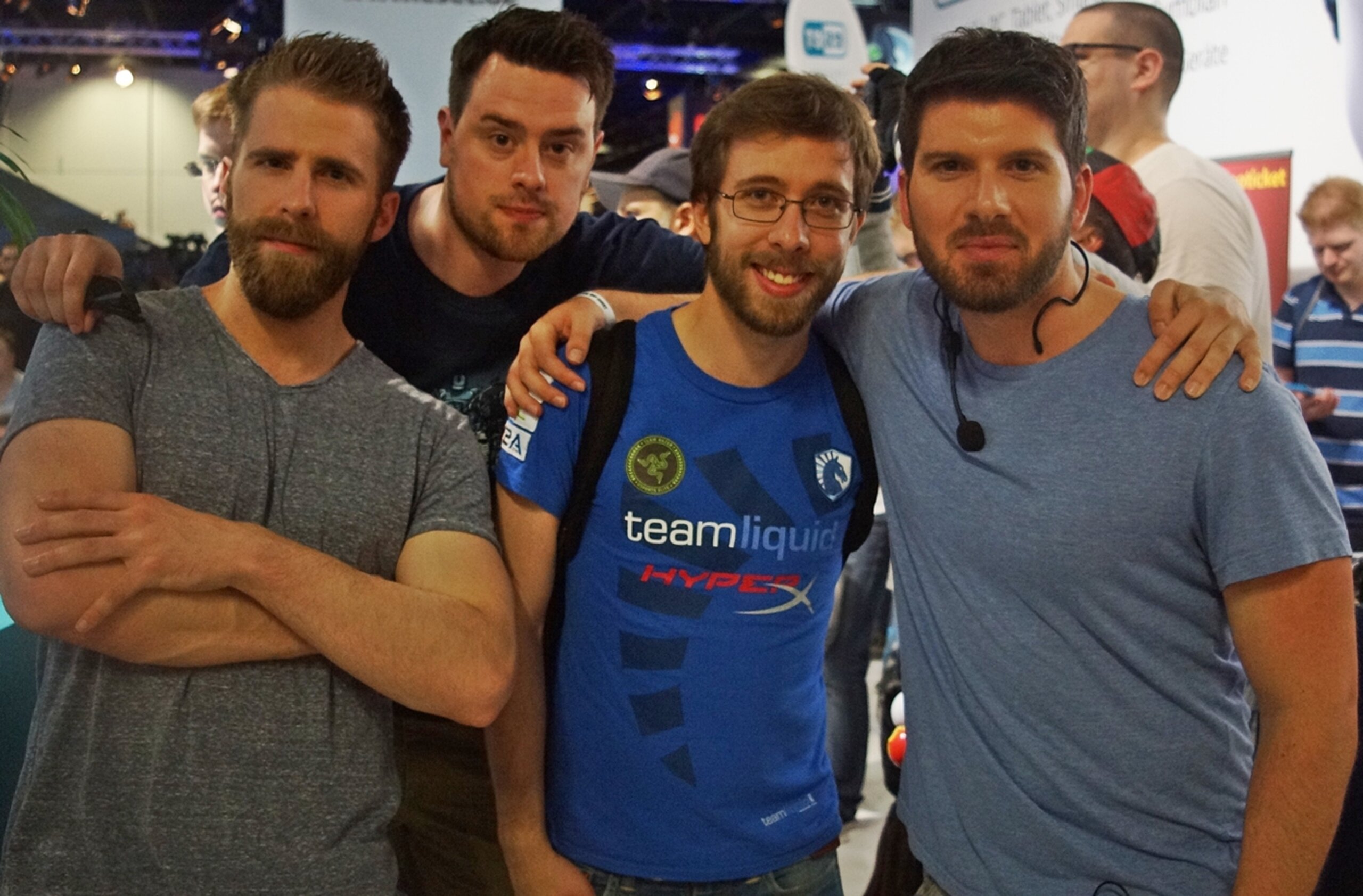 Am Ende schaffte Solar es sogar, sich gegen seine Gegner durchzusetzen und durfte im Finale gegen Budi antreten! Solar spielte das ganze Turnier über Protoss, wechselte für das Finale aber zu Terra, welches seine schwächste Rasse ist. Immerhin wollte er dem immer-glücklichen Asiaten eine Chance auf sen Sieg geben. Außerdem hatten wir für das Finale eine kleine Überraschung für Euch bereit: An Niklas Seite castete diesmal nämlich niemand geringeres als TLO. Der deutsche Progamer nahm sich die Zeit, uns am ESET Stand zu besuchen und das Finale zusammen mit Honor zu casten. Für uns alle war es eine riesige Freude! Solar besiegte dann den guten Budiman in zwei spannenden Games und darf sich somit nun selber den "Budi-Bezwinger" nennen. Hier noch ein wunderschönes abschließendes Gruppenfoto von (lnr) Honor, Kerrag, TLO und Mental.