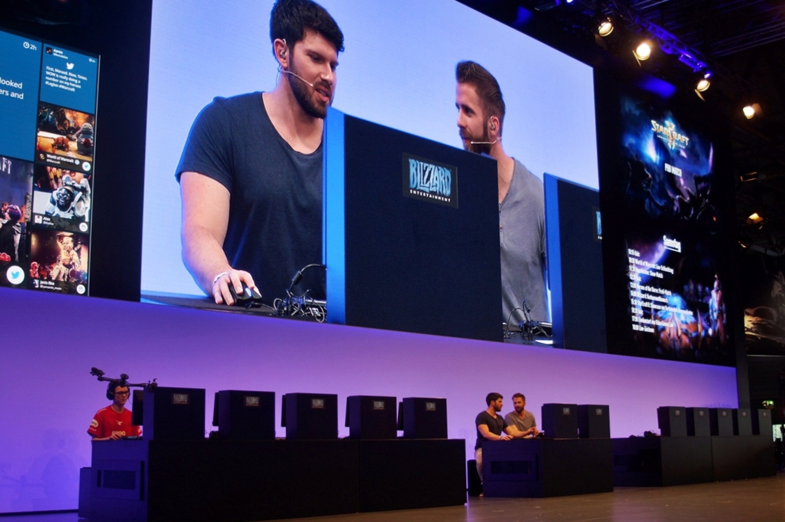 Natürlich mussten auch wir eines dieser obligatorischen "Oh mein Gott, es ist so voll" - Fotos machen. Danach war es dann aber auch an der Zeit: Ab zur Blizzard-Bühne! Dort gab es ein episches Showmatch zwischen Heromarine und Lilbow in der Beta zu Legacy of the Void. Gecastet wurde das Ganze natürlich von den schönsten Starcraft Castern der Welt: Mental und Honor. Diesmal hatten wir sogar Glück - es gab kein Delay und wir konnten wirklich die volle Ladung an Action auspacken! Im ersten Game packte er den selben Style. Verlor dann aber 2:1. Somit gewann der deutsche Terraner Heromarine und auch unsere Performance auf der Blizzard-Bühne war schon wieder vorbei. Es war kurz, aber super.
