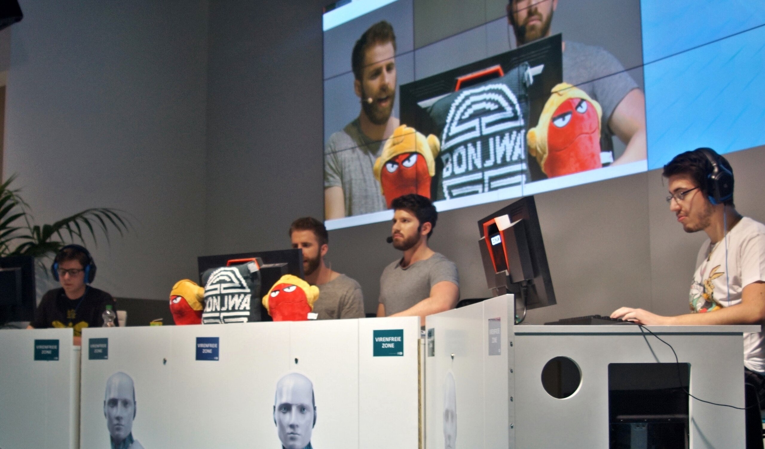Unserere erste Aktion um 8 Uhr morgens am Samstag war dann eine Packung Reis beim Rewe zu kaufen - denn Social Media ohne Handy kann ganz schön schwierig sein. Danach holten uns Kaffee und liefen zum gewohnten Anhaltspunkt: Dem ESET Stand. Diesmal lief nur leider nicht alles so wie geplant. Mental hatte die Kabel durchgekaut und deswegen funktionierte das Internet nicht. Alle 15 Minuten wurde neue Hoffnung versprüht - und uns direkt wieder genommen. Nach einer Stunde war der E-Sport Gott uns aber doch gnädig gesinnt. Somit konnten wir direkt in die nächste Runde Call of Budi starten! Auch diesmal waren wieder einige bekannte Gesichter aus der Bonjwa Community am Start - unter anderem Blechfaust und Iven aka Boogeyman. Iven ist Bonjwa Fan seit der ersten Stunde und das hat sich anscheinend ausgezahlt. Denn auch er schaffte es, sich gegen seine Gegner durchzusetzen und traf im Finale auf den ultimativen Endboss: Das Budimann! Trotz der Verzögerung schafften wir es pünktlich um 13: 45 Uhr live zu gehen. Iven bezwang Budi in zwei spannenden Matches - durfte sich aber nicht als offizieller Budi-Bezwinger betiteln. Wir hatten nämlich keine Pokale mehr und das tut uns noch immer unendlich leid! Trotzdem bekam er ein nettes Goodie-Bag von den Rocketbeans, sowie eine fette, signierte Raketenbohne!