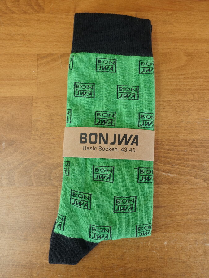 - Bonjwa-Grüne Socke mit eingewebtem Logo in Schwarz